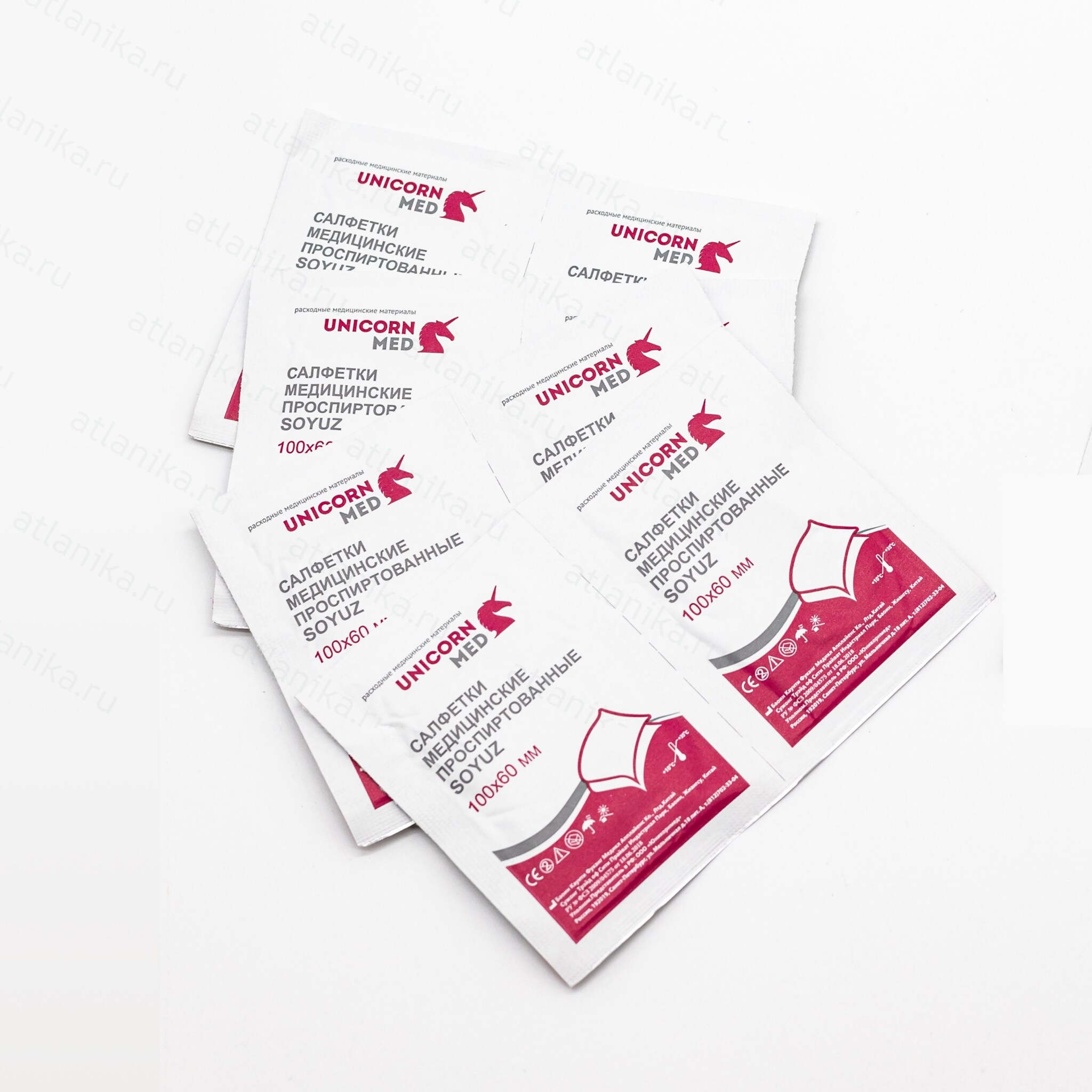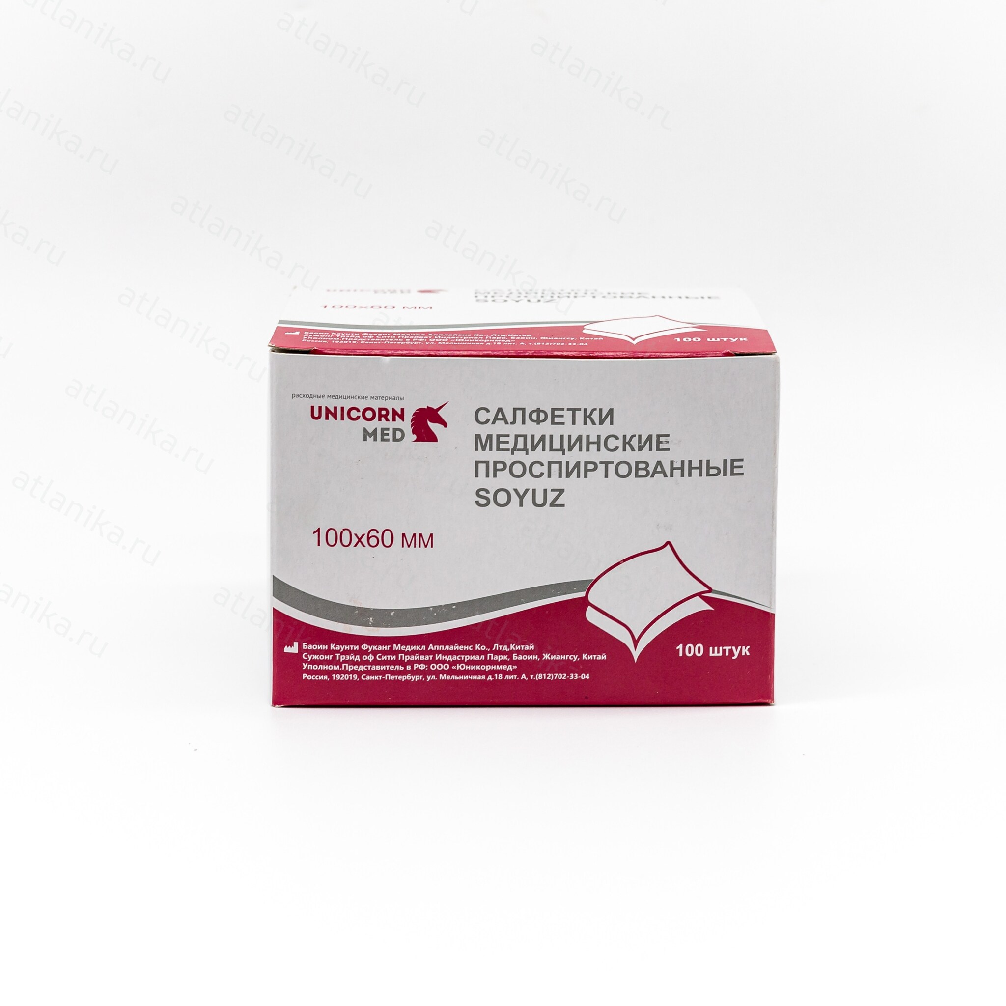 Салфетки спиртовые медицинские 100x60 мм (уп-ка: 100 шт.) "SOYUZ"